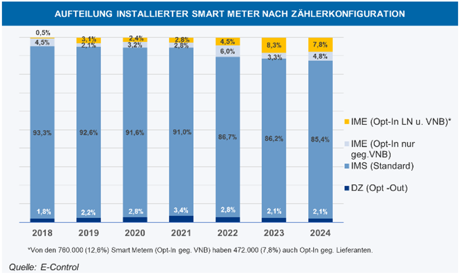 1 Im Gegensatz zu kommunikativen Smart Metern sind nicht-kommunikative jene Geräte, bei denen nach der Erstinstallation die Kommunikation noch nicht stabil ist oder jene, die noch nicht an das zentrale System des Netzbetreibers angeschlossen sind.