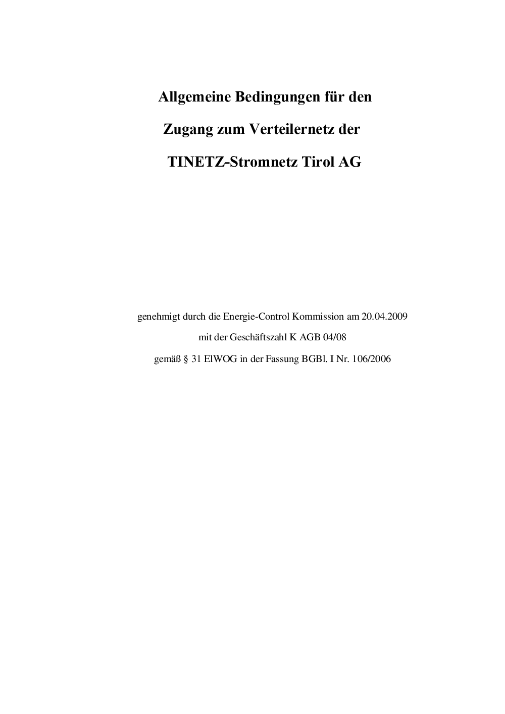 - Verteilernetzbedingungen TIWAG Netz/TINETZ 20.4.09