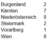 Gleichzeitig wurde zusätzlich abgefragt, ob und wie viele Energiegemeinschaften bis 30.06.2023 im Netzgebiet der jeweiligen Netzbetreiber tätig waren. Dabei kam es in diesem Zeitraum zu einem Anstieg auf 28 BEGs. Diese verteilen sich wie folgt.